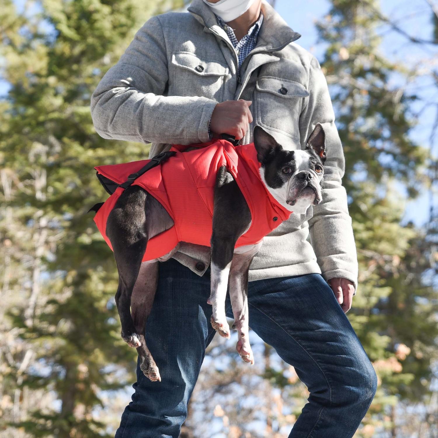 The Gooby Cold Weather Dog Carrier help your dog when tired or on an adventure and in need of help. This is where our Cold Weather Carrier comes in. With its full-body support frame, it’s able to support the dog when in need. Step in coat will keep dogs warm when out on the trail and can help when the unexpected happens. Kift your pup when injured, keep out of mud and lift over boulders.