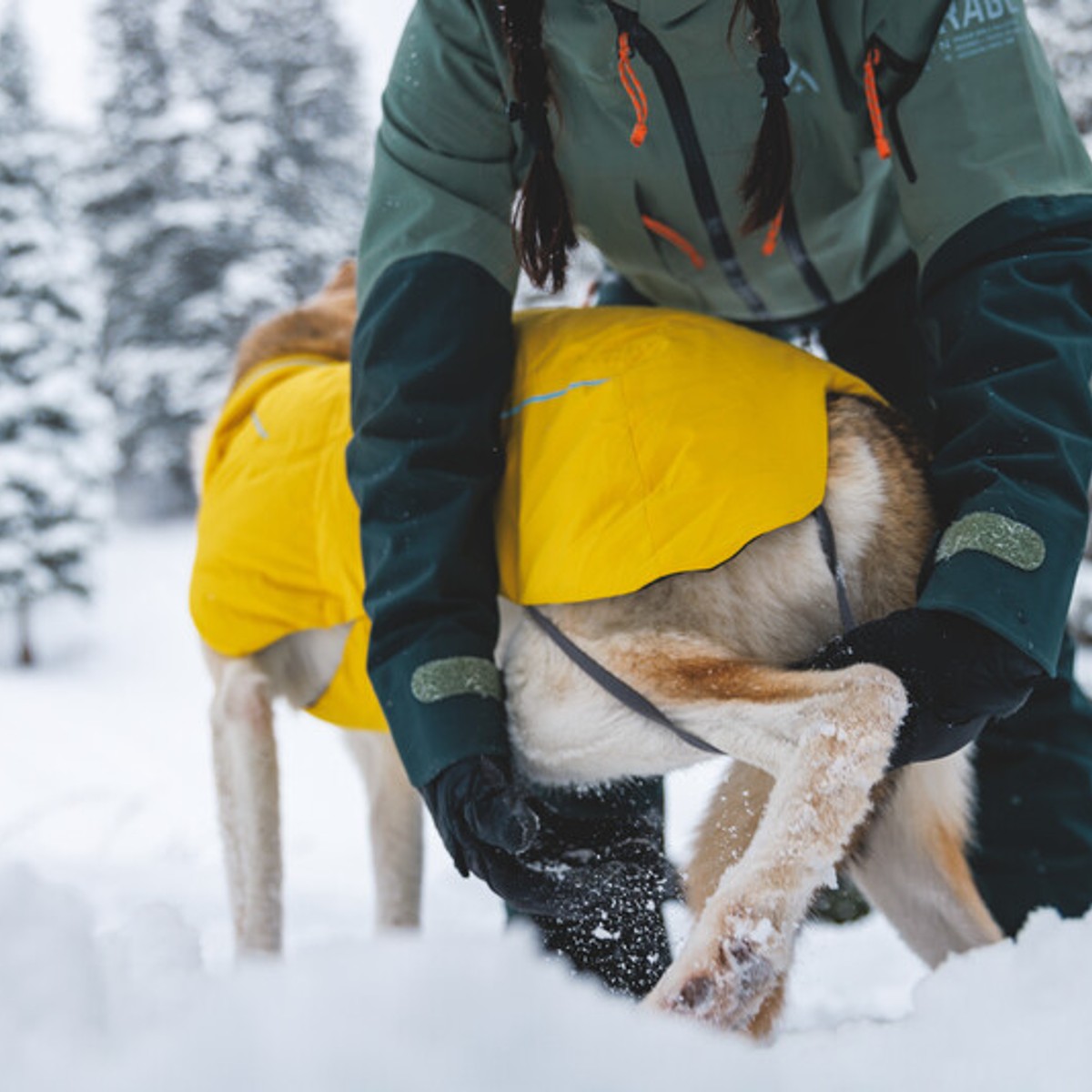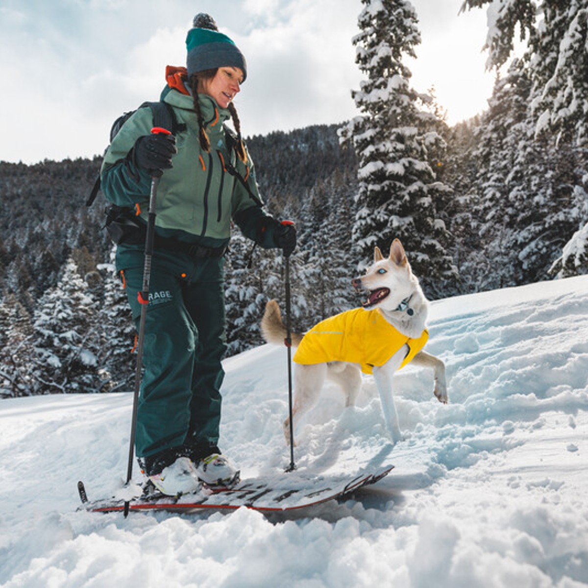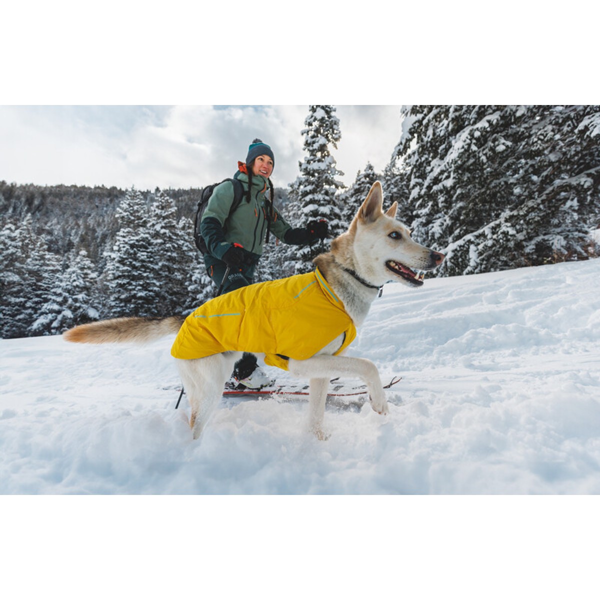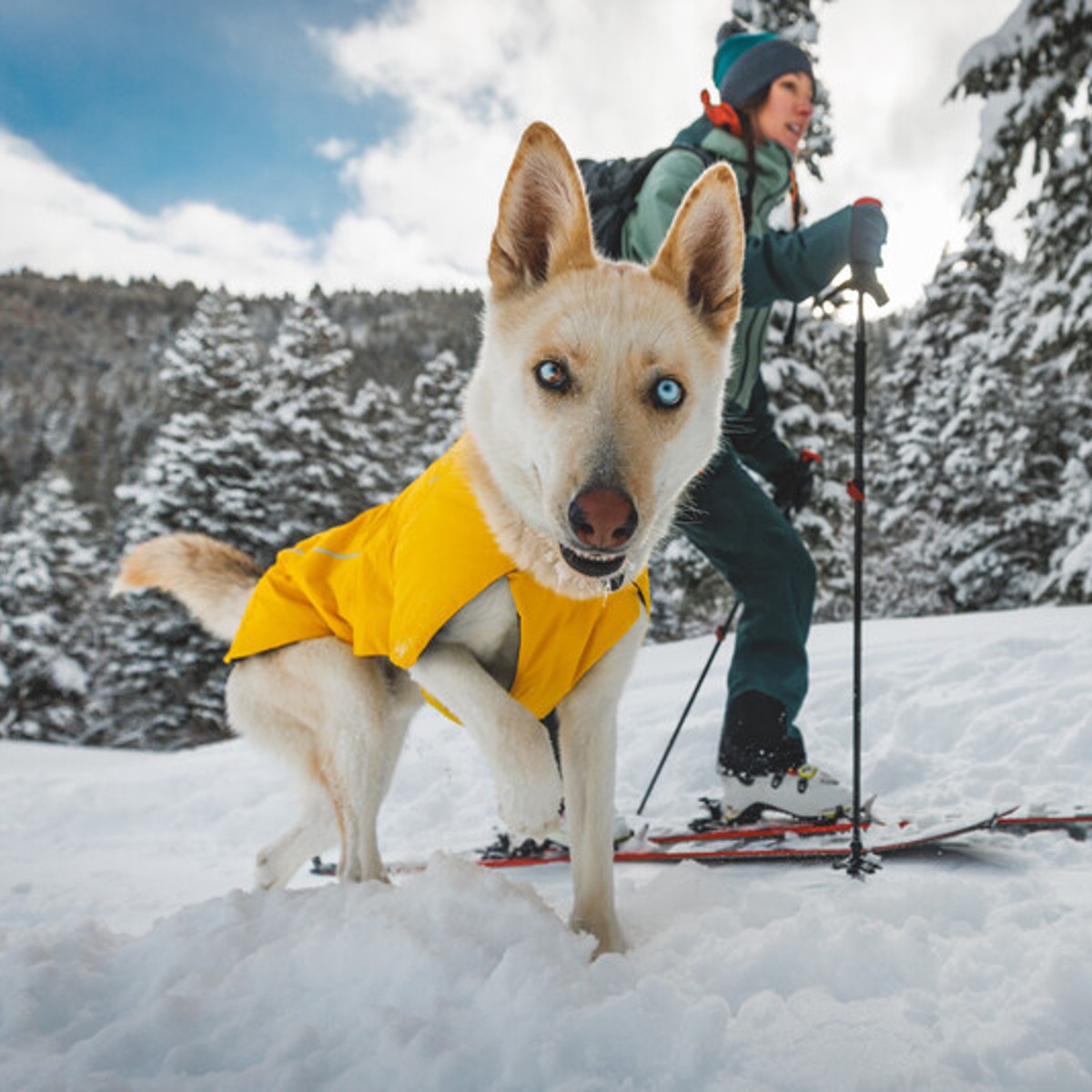 The elements wont stop you and your pal from enjoying the outdoors with the RuffWear Vert™ Dog Jacket in Mineral Yellow!